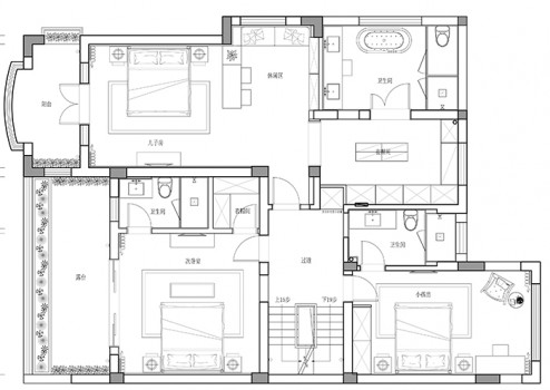 業(yè)主是一家3口但父母不經(jīng)常一起住,業(yè)主是外貿(mào)老總。主要留給兒子作為婚房使用,并最終選擇兒子喜歡的現(xiàn)代手法進(jìn)行設(shè)計(jì)此房屋。