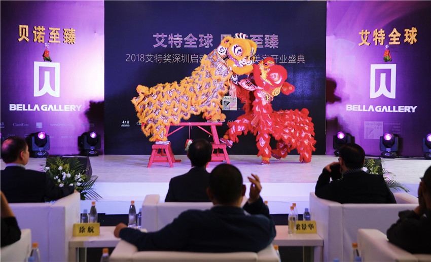 開業(yè)剪彩前,中國傳統(tǒng)的象征吉祥如意的雄獅帶來精彩的“雄獅采青”表演。深圳市貝諾美家家居設(shè)計(jì)有限公司董事長欒女士,艾特獎(jiǎng)組委會(huì)秘書長、A963設(shè)計(jì)網(wǎng)副總裁何光會(huì)先生,共同為雄獅點(diǎn)睛,左點(diǎn)金,右點(diǎn)銀,中間點(diǎn)天下太平,寓意Bella Gallery從此接財(cái)納福,財(cái)源廣進(jìn)!