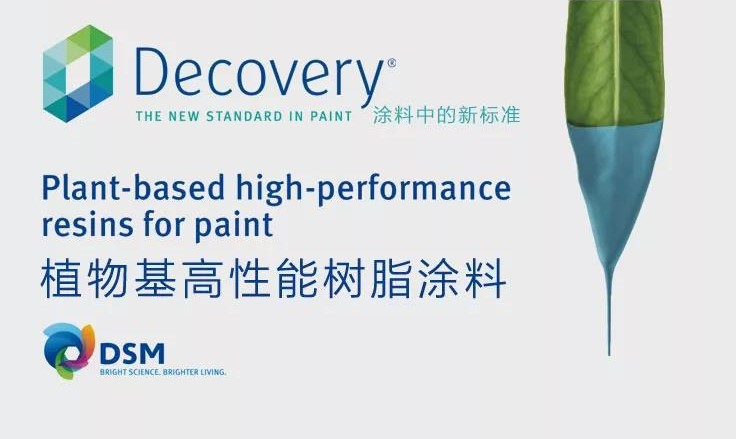 樹脂是涂料中最主要的成分和基礎(chǔ),也稱基料。大多數(shù)設(shè)計師和建筑師都使用溶劑型或水性涂料,這些涂料中含有大量對環(huán)境有負(fù)面影響的石油成分。而帝斯曼的Decovery®以植物為基礎(chǔ),環(huán)保健康,減少碳足跡,滿足現(xiàn)在和未來終端用戶的高性能要求。