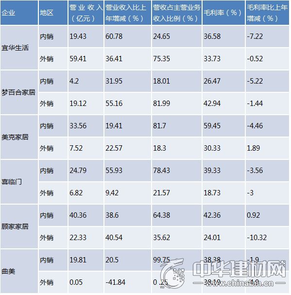宜華生活2017年主營業(yè)務(wù)收入78.84億元,較上期增長41.70%,其外銷業(yè)務(wù)收入呈穩(wěn)步增長態(tài)勢。報告期內(nèi),宜華生活實行國內(nèi)外市場聯(lián)動策略拓展市場。外銷市場,采用靈活的經(jīng)營策略,調(diào)整出口產(chǎn)品結(jié)構(gòu),在鞏固原有市場份額的基礎(chǔ)上拓展軟體沙發(fā)市場;內(nèi)銷市場,加快國內(nèi)營銷體系的建設(shè),建立多渠道發(fā)展格局,充分利用互聯(lián)網(wǎng)思維及上下游資源整合推動內(nèi)銷業(yè)務(wù)增長,加快布局線上線下O2O泛家居生態(tài)系統(tǒng),提升流量的轉(zhuǎn)化率。