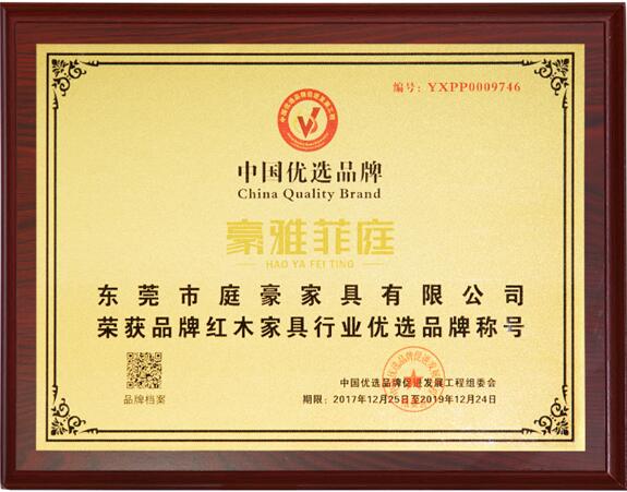 2017年12月25日,豪雅菲庭被CCTV《發(fā)現(xiàn)品牌》欄目組籌辦的中國(guó)優(yōu)選品牌促進(jìn)發(fā)展工程評(píng)選為“紅木家具行業(yè)的優(yōu)選品牌”。在層層苛刻的考察與評(píng)選下,豪雅菲庭用工匠精神,感動(dòng)了評(píng)委會(huì),并贏得了評(píng)委會(huì)的一致好評(píng)。