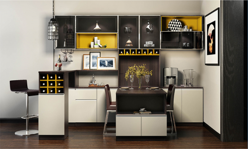 餐廳做了餐邊柜,真的是能提升餐廳的浪漫氣氛,而且收納空間也提升了不少。一般餐廳的餐邊柜可以儲放紅酒,茶具,茶葉等等物品,把它裝飾成一個酒吧休閑區(qū),在那里聽聽音樂,喝喝小酒,簡直是享受了。好萊客的對于餐邊柜的設(shè)計融合生活休閑的元素,讓餐廳不僅是吃飯的地方,而是另外一個放松地方。