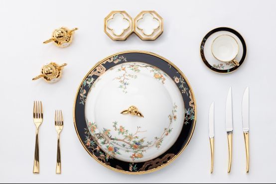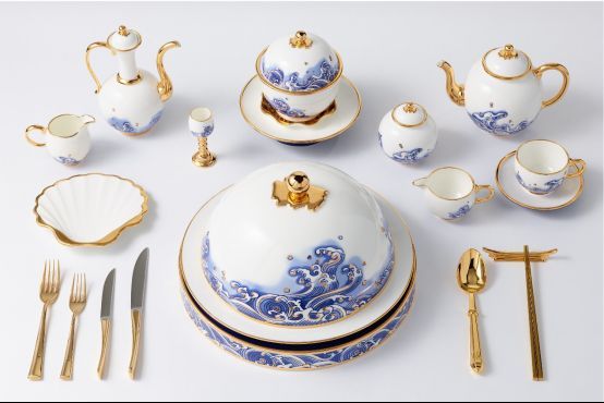 2017年9月 (廈門)金磚峰會宴會用瓷。“海上明珠”取鼓浪嶼、萬國建筑、貝殼、海浪等廈門當?shù)氐姆柸氘a(chǎn)品設計元素,運用大面積的描金。營造一種中國式的生氣盎然、細膩雅致、溫馨和美的感覺。