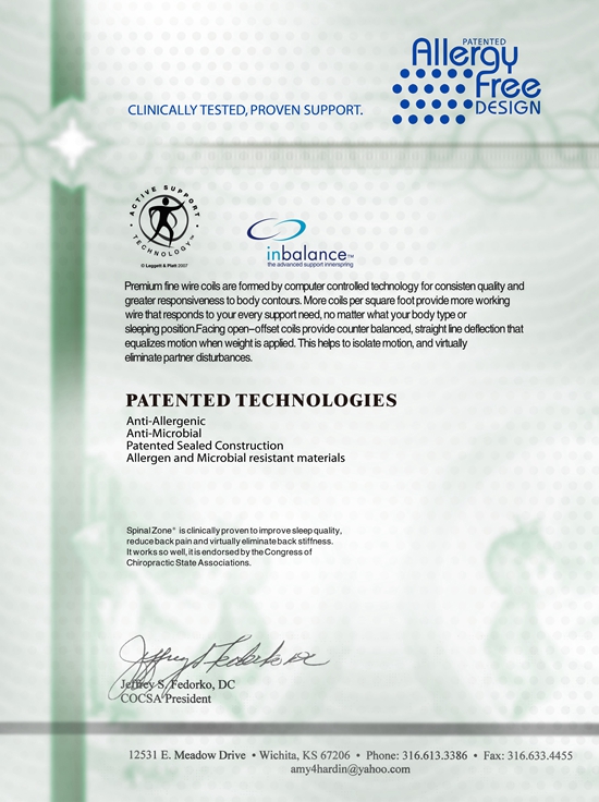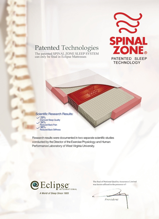 1967年,伊麗絲就發(fā)明了被稱(chēng)為“床中床”的“中央護(hù)背”設(shè)計(jì),即在床墊中間再增加一張小床以增加床中央的支撐力,可以減輕腰部、背部及脊椎的壓力,同時(shí)可保持人體的曲線美。1993年,美國(guó)西維吉尼亞大學(xué)測(cè)試證明:與其他床墊相比,伊麗絲的護(hù)背區(qū)設(shè)計(jì)可提高29%的睡眠質(zhì)量,提高34%減輕背部疼痛功能,提高96%背部疾病預(yù)防功能。同樣的結(jié)果,在1994年的測(cè)試中又一次得到認(rèn)證。到2005年,伊麗絲在技術(shù)革新的基礎(chǔ)上,研發(fā)了第二代專(zhuān)利,并獲得美國(guó)國(guó)家脊椎治療協(xié)會(huì)認(rèn)證,在全球范圍內(nèi)稱(chēng)為唯一一家受此殊榮的床墊品牌。