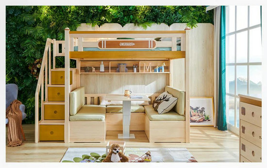 “樹與屋”的設(shè)計(jì),以松堡王國自始至終唯一使用的歐洲芬蘭松為原材料,原生態(tài)地展示了芬蘭松作為兒童家具的優(yōu)勢和環(huán)保性能,讓人們直觀地感受到松堡王國兒童家具原材料選取上的用心和專心。