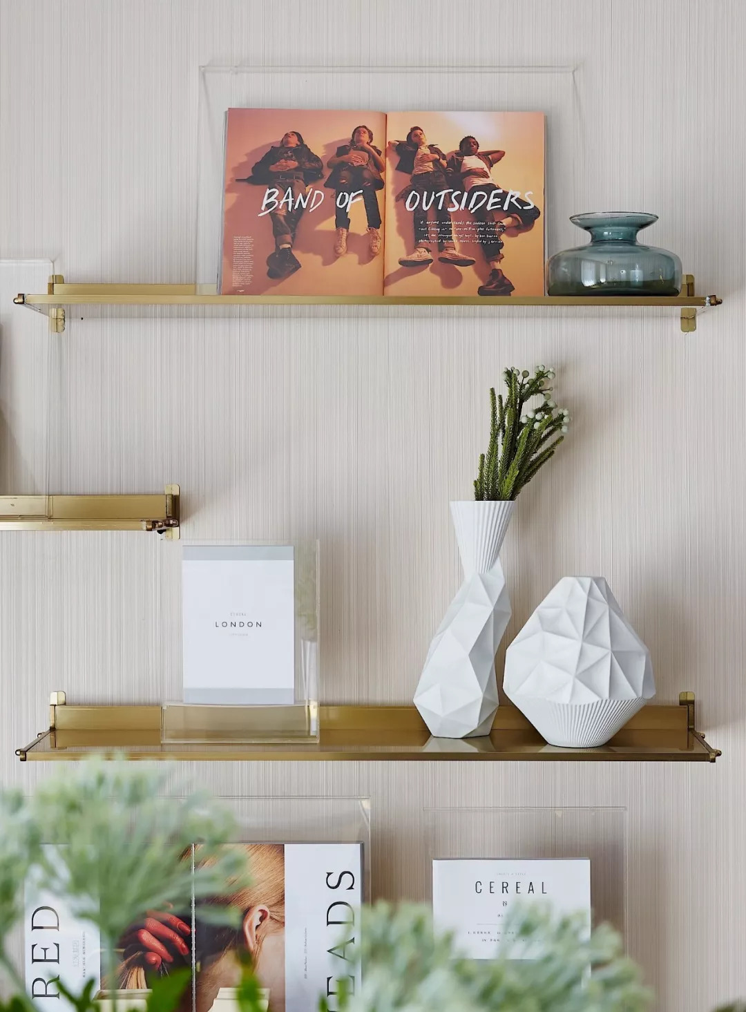 在1F成衣、飾品、配飾展示廳,幾何圖形與線、面的搭配,呈現(xiàn)時尚又不失大氣,大面積的高級灰,大理石、金屬等搭配精致而富有藝術(shù)感,連貫而富有詩意地形成空間的優(yōu)雅品位。
