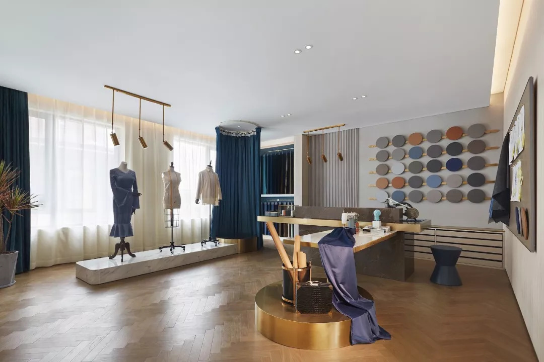商務(wù)公館應規(guī)劃何種辦公空間的展示,從對可能選擇該區(qū)域的客群入手,在分析商務(wù)公館各項條件后,認為此處更適合一個高端的,創(chuàng)業(yè)期或發(fā)展期的小型企業(yè),多方溝通后,一家服裝高定工作室FERN STYLISTS誕生了。業(yè)主Fern Wu,時尚、精致、簡約,這也是天瑯潛在客群的共性特征。從用戶的角度出發(fā),營造這類人群追求的辦公體驗。
