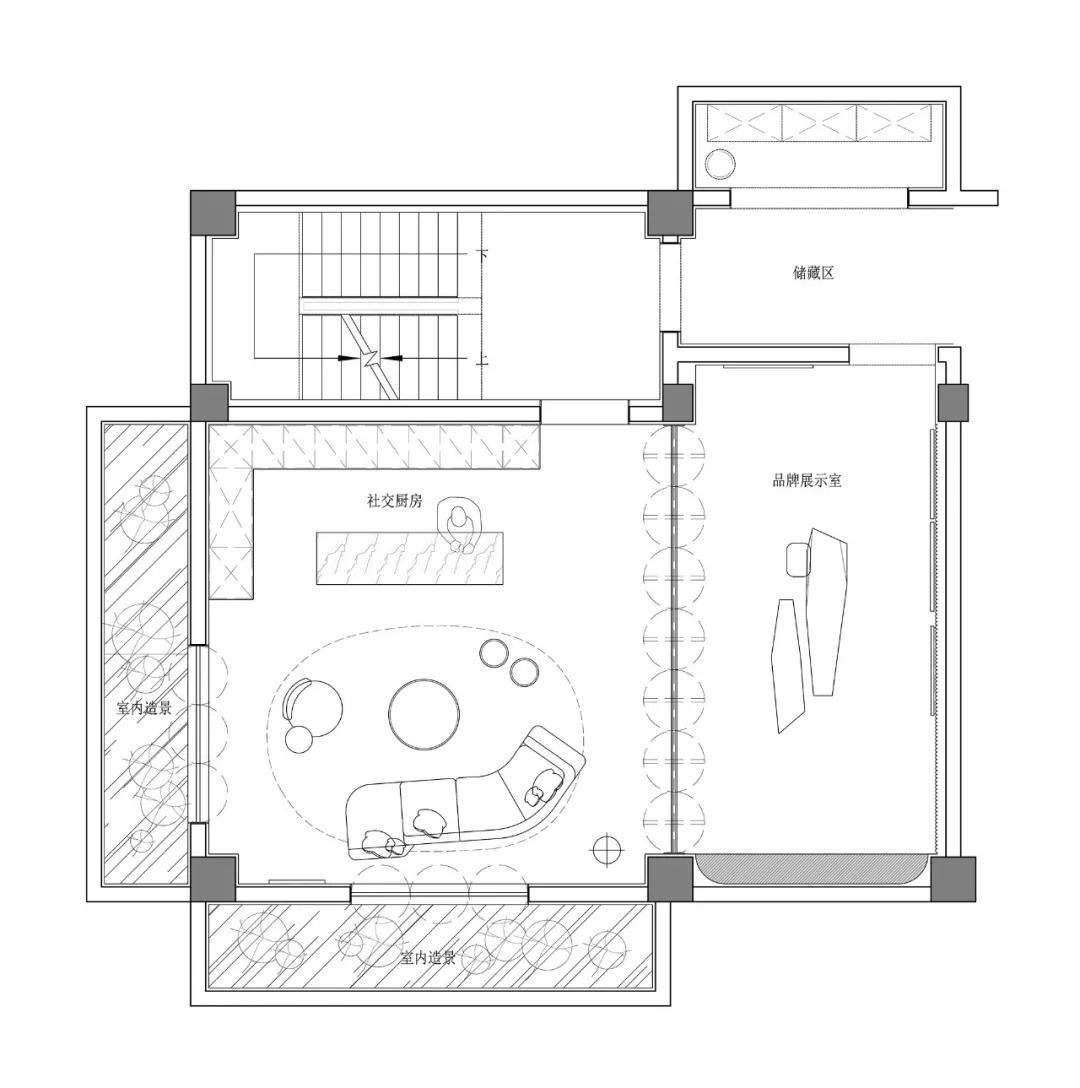 真正的藝術(shù)呈現(xiàn)是基于生活的形式與意義的再處理,為空間賦予獨特的藝術(shù)知覺。夾層的空間功能是私密聚會和服裝發(fā)布,設(shè)計營造氛圍,向參與者發(fā)出邀請。