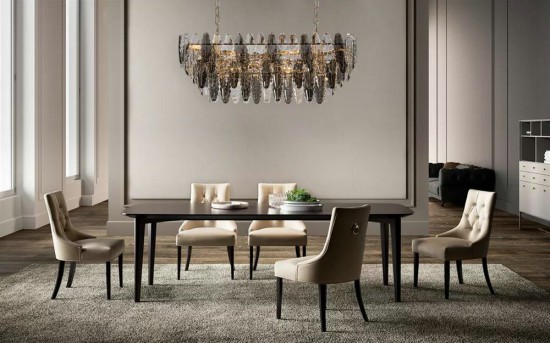 層層疊疊的垂飾,大小不一,體形不一,展現(xiàn)了燈具整體的美感,創(chuàng)造了一種融感性與理性的室內(nèi)環(huán)境。在輕奢風中色彩選擇上,更加自由和灑脫,運用了輕奢最常用的碳灰色,來演繹一種“低調(diào)的奢華”,令空間質(zhì)感更為飽滿。不同的造型、色彩、材質(zhì)、大小能為不同的居室營造不同的光影效果,展現(xiàn)出不同的室內(nèi)氛圍,形成以簡約的設(shè)計、時尚的藝術(shù)、奢華的格調(diào)。