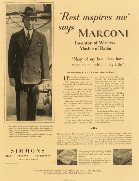 早在1927-1928年,包括前美國第一夫人在內(nèi)的埃莉諾·羅斯福女士、汽車大王亨利·福特, 大發(fā)明家托馬斯·愛迪生,古格里莫·馬可尼及喬治·蕭伯納等眾多社會名流為Simmons®席夢思免費代言,甚至慈禧太后都是它的死忠粉,出巡時都要將席夢思床墊搬上皇家列車。