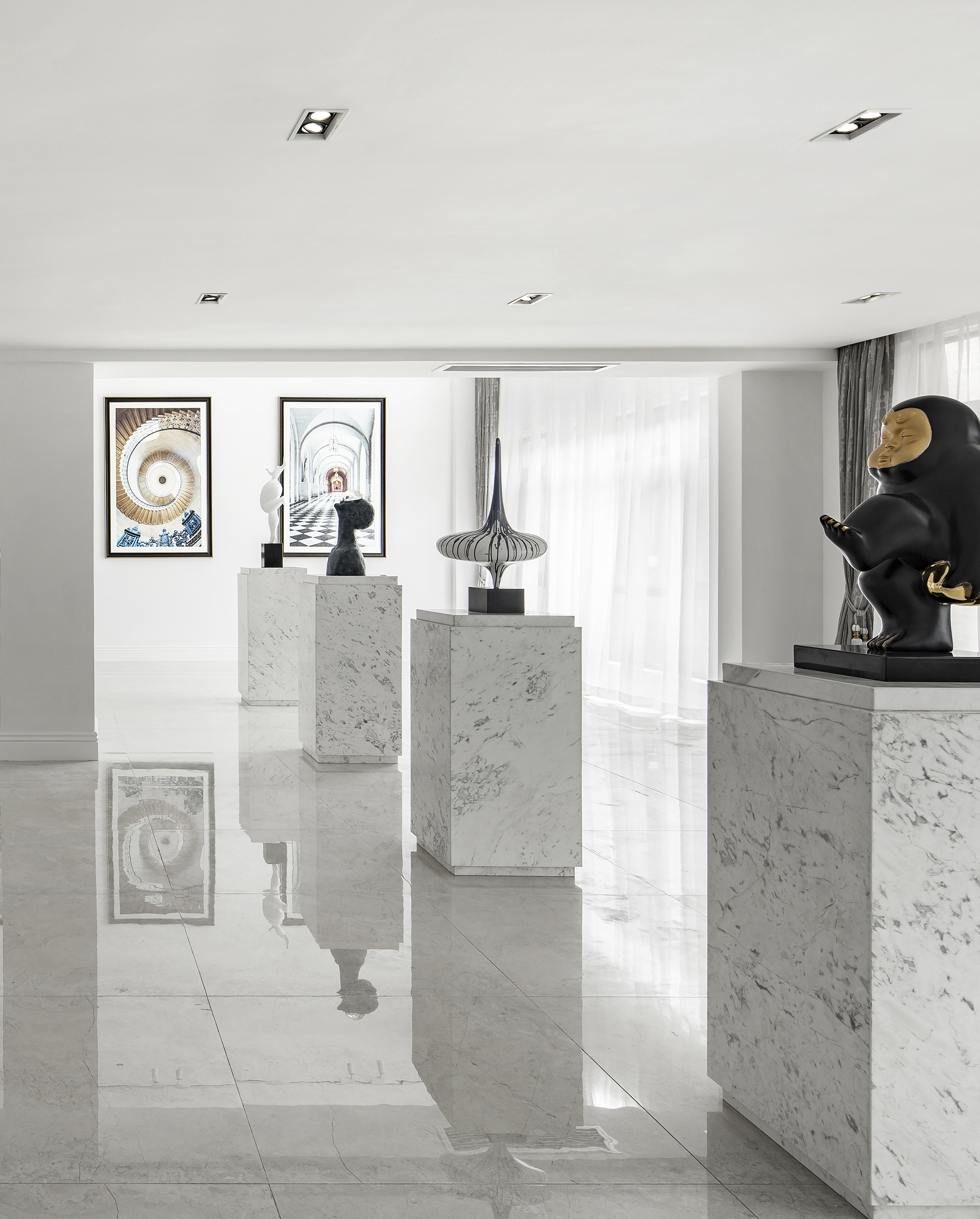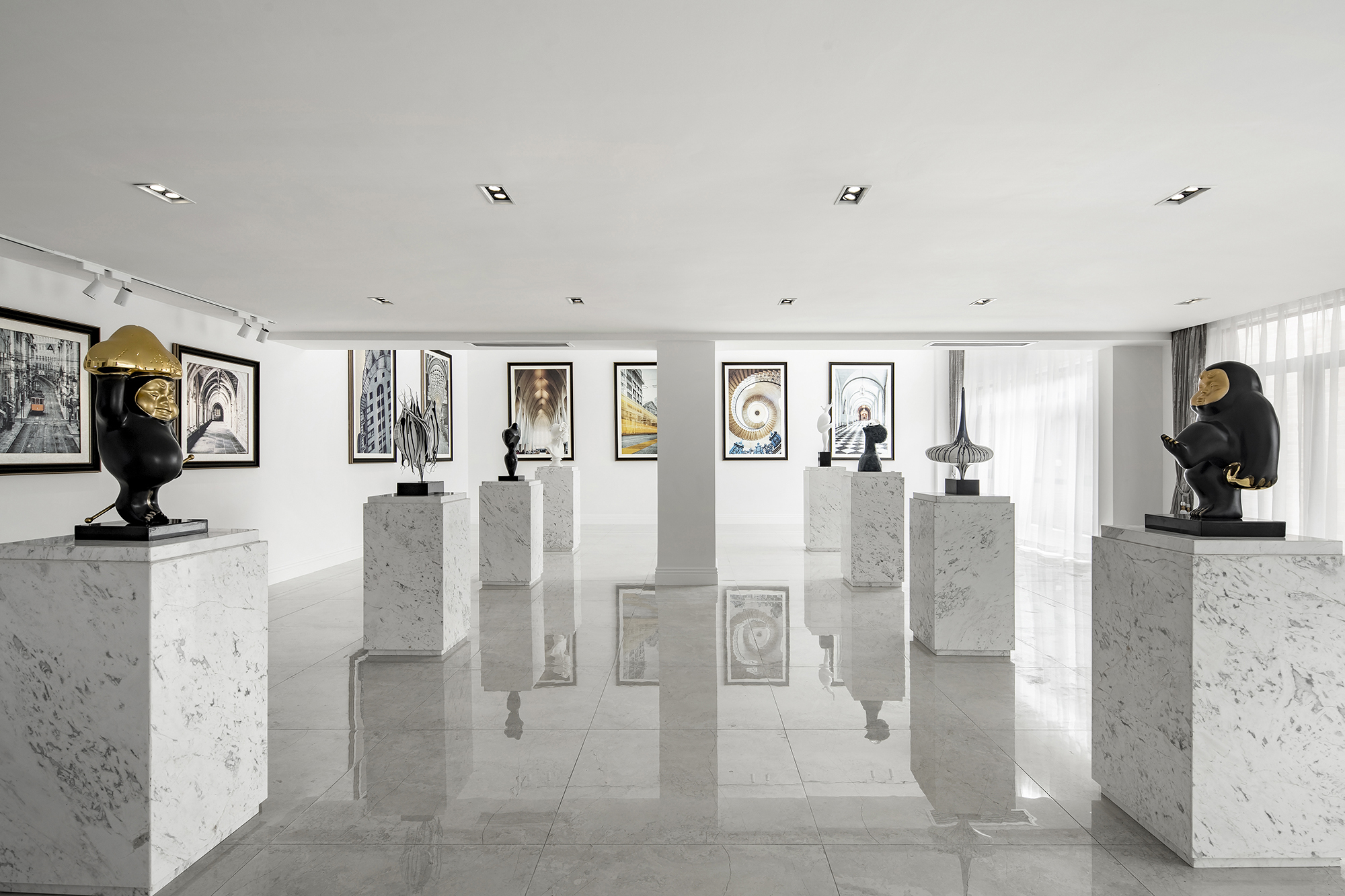 “藝術(shù)本無界”,展廳里寫實的攝影作品與嬉皮趣致的藝術(shù)擺件,形成有趣而又和諧的對話。城市的繁麗風采,建筑的宏偉秩序感,雕塑藝術(shù)的詼諧和深刻,色彩的多層碰撞,在靜謐的空間中,藝術(shù)的界限已然模糊,觸動著人的內(nèi)心。