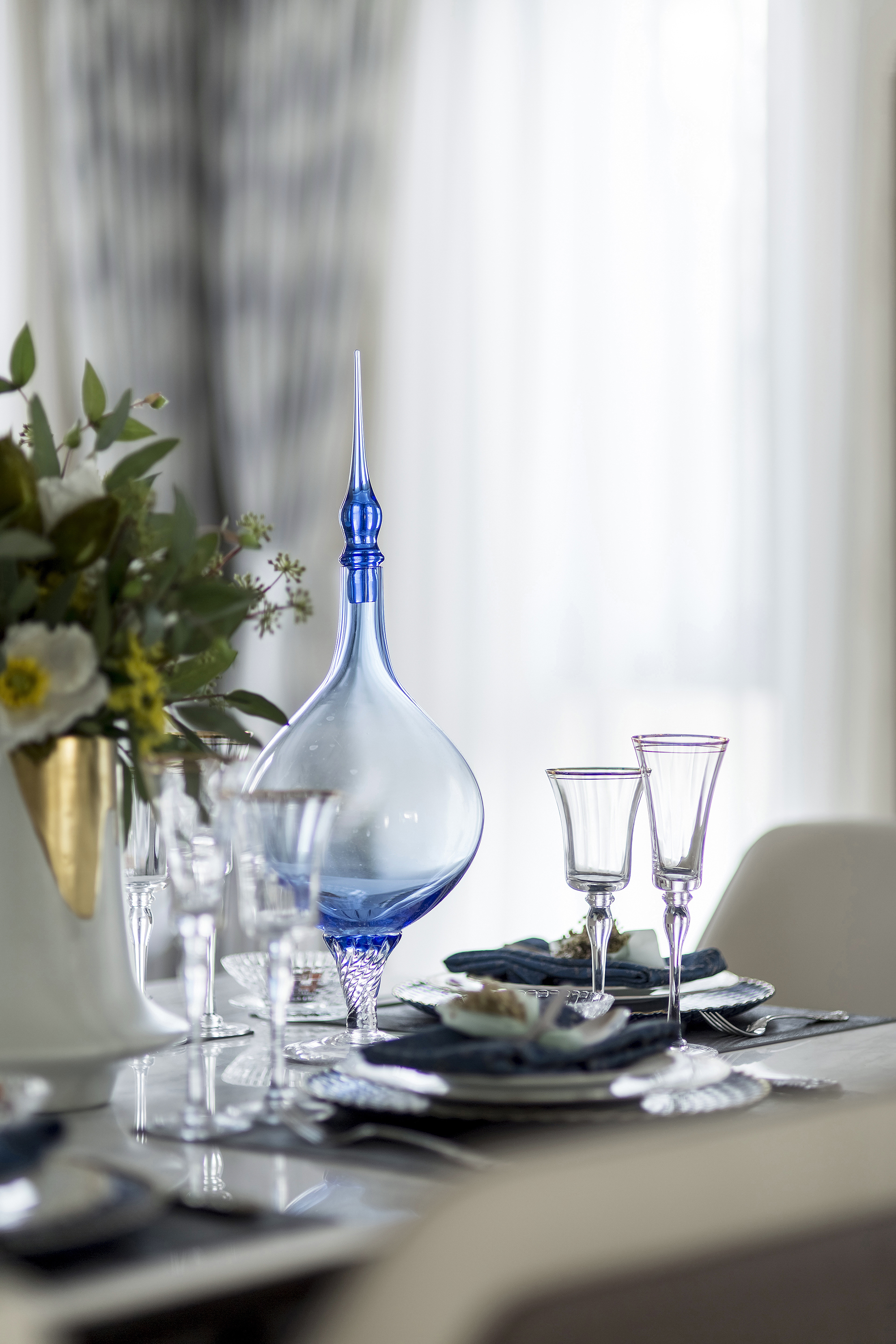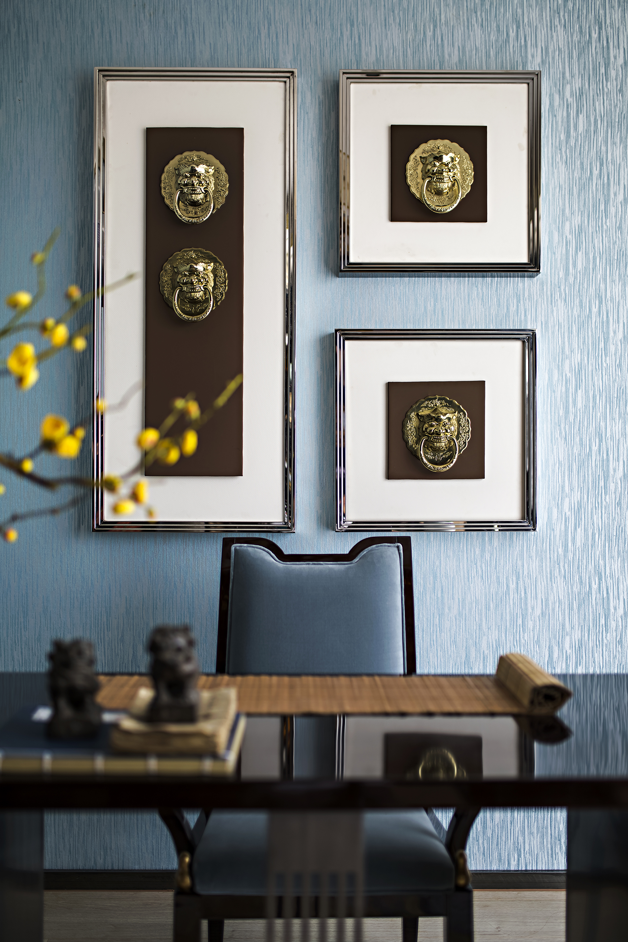 微風輕柔掠過,門廳左右兩面的珠簾隨風輕擺,吐納著微醺的韻律,與一旁剔透的琉璃小品光影交匯,其中的情韻柔軟而繾綣。