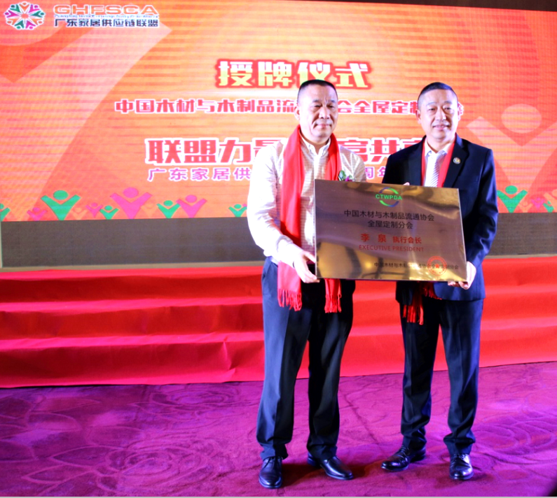 晚宴上還分別給:榮譽(yù)主席,執(zhí)行主席、常務(wù)副主席,副主席,高級(jí)會(huì)員,全國(guó)工商聯(lián)家具裝飾商會(huì)供應(yīng)鏈委員會(huì)授牌儀式和中國(guó)木材與木制品流通協(xié)會(huì)全屋定制分會(huì)舉行了授牌儀式。