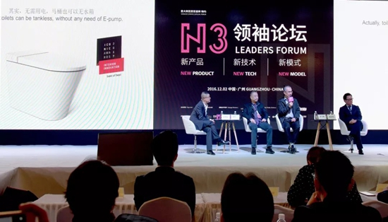 2016年11月27日,第十一屆廣州設(shè)計周,N3領(lǐng)袖論壇暨廣州設(shè)計周開幕大會的現(xiàn)場,AXENT恩仕無水箱坐便器 “設(shè)計概念” 視頻——《等待200年的馬桶革命》精彩獻映,引爆全場。