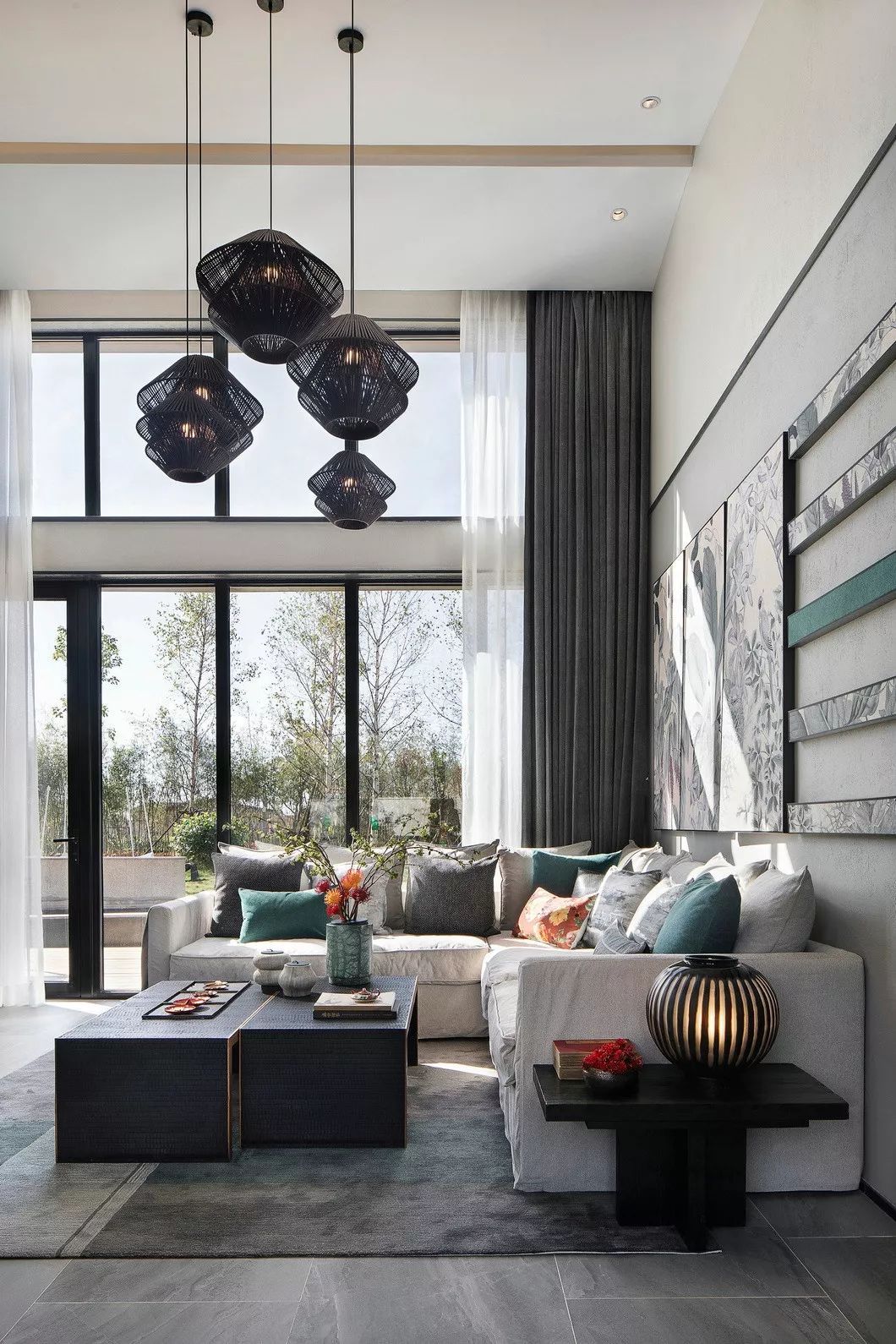 開(kāi)闊的別墅庭院空間,自然植物綠意盈盈,通透的玻璃門窗消弭了內(nèi)外空間明確的界分感,將四季景致演變?yōu)榭臻g的一部分,每個(gè)空間都能享有充足的自然光照。敞亮的客廳,自然與人文氣韻交融,古雅而不乏活力的配色,在沉靜從容中散發(fā)出欣然自在的韻味。