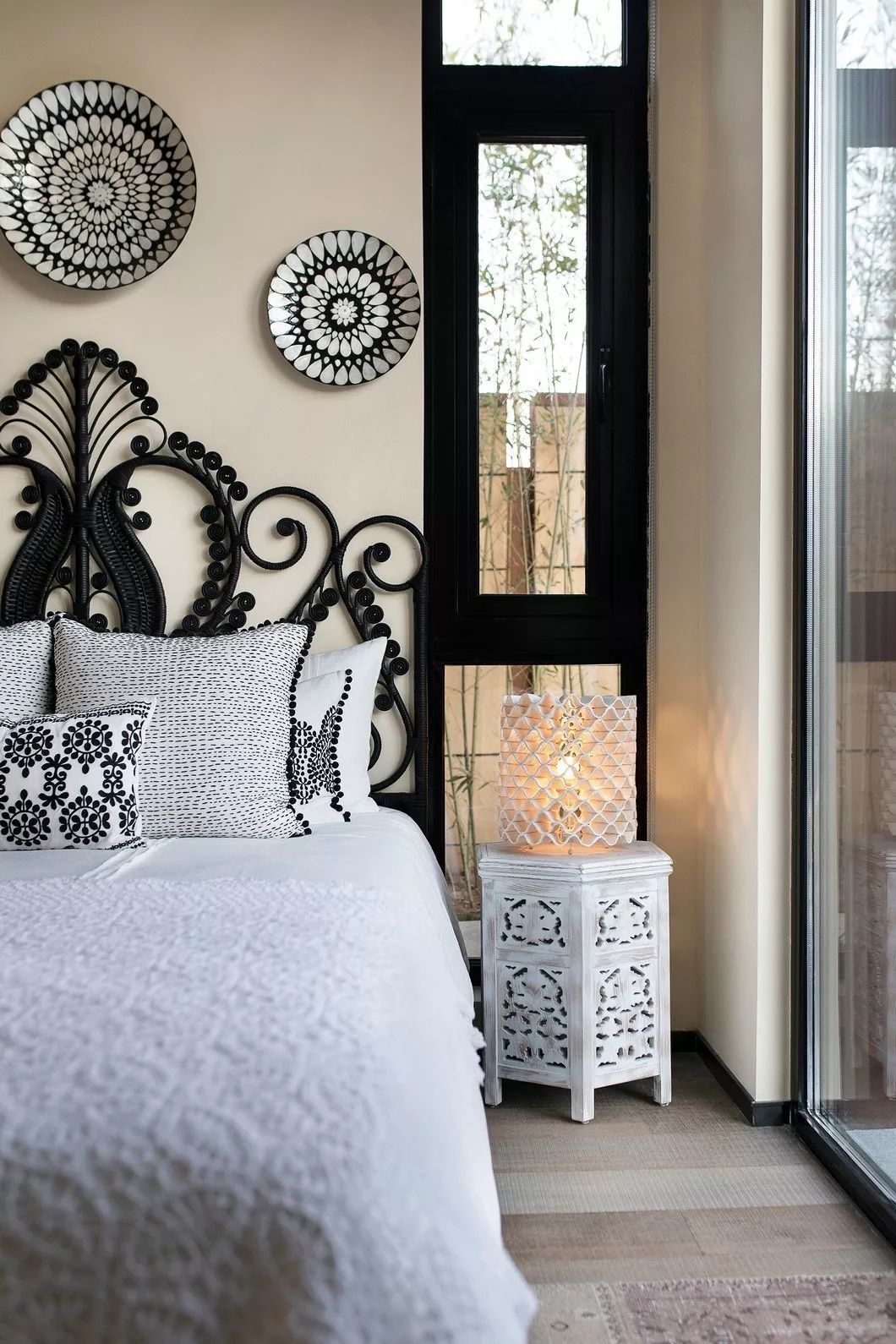 休息區(qū)域的設(shè)計(jì)延續(xù)這種思路,將北非的花紋元素以不同的形式凝結(jié)在軟裝配飾上,取材天然的手工飾品令空間更添妙趣,進(jìn)而讓人感悟自然大地與藝術(shù)氣息的交融。