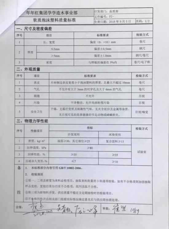 優(yōu)秀案例一:年年紅——軟質(zhì)泡沫塑料采購技術(shù)要求