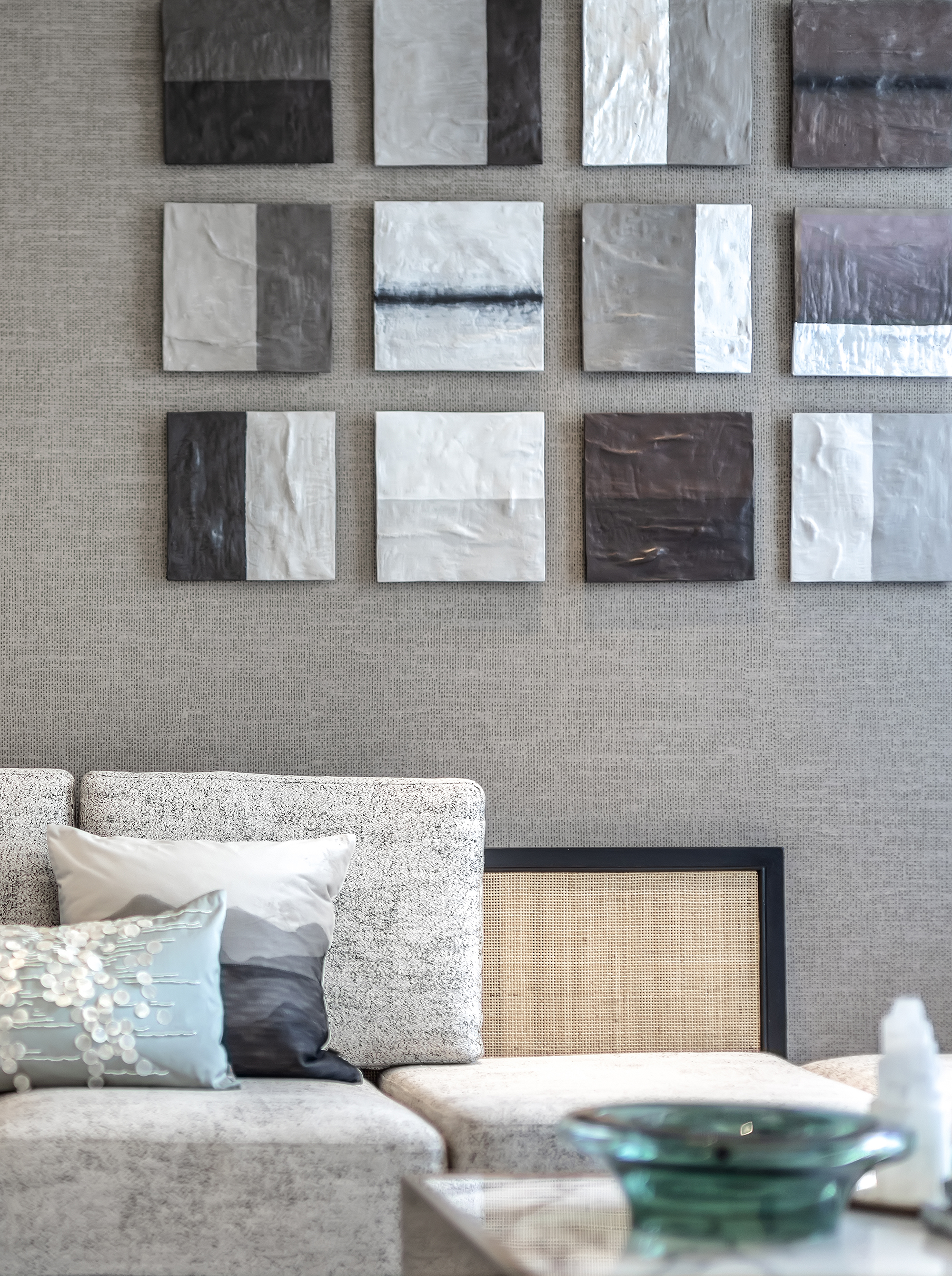 在家庭廳,設(shè)計(jì)師用當(dāng)代寫意的手法將濟(jì)南“一城山色半城湖”的意境展演出來,畫里畫外、墻上墻下,物質(zhì)的界域打破,任由藝術(shù)的能量?jī)A瀉而出。