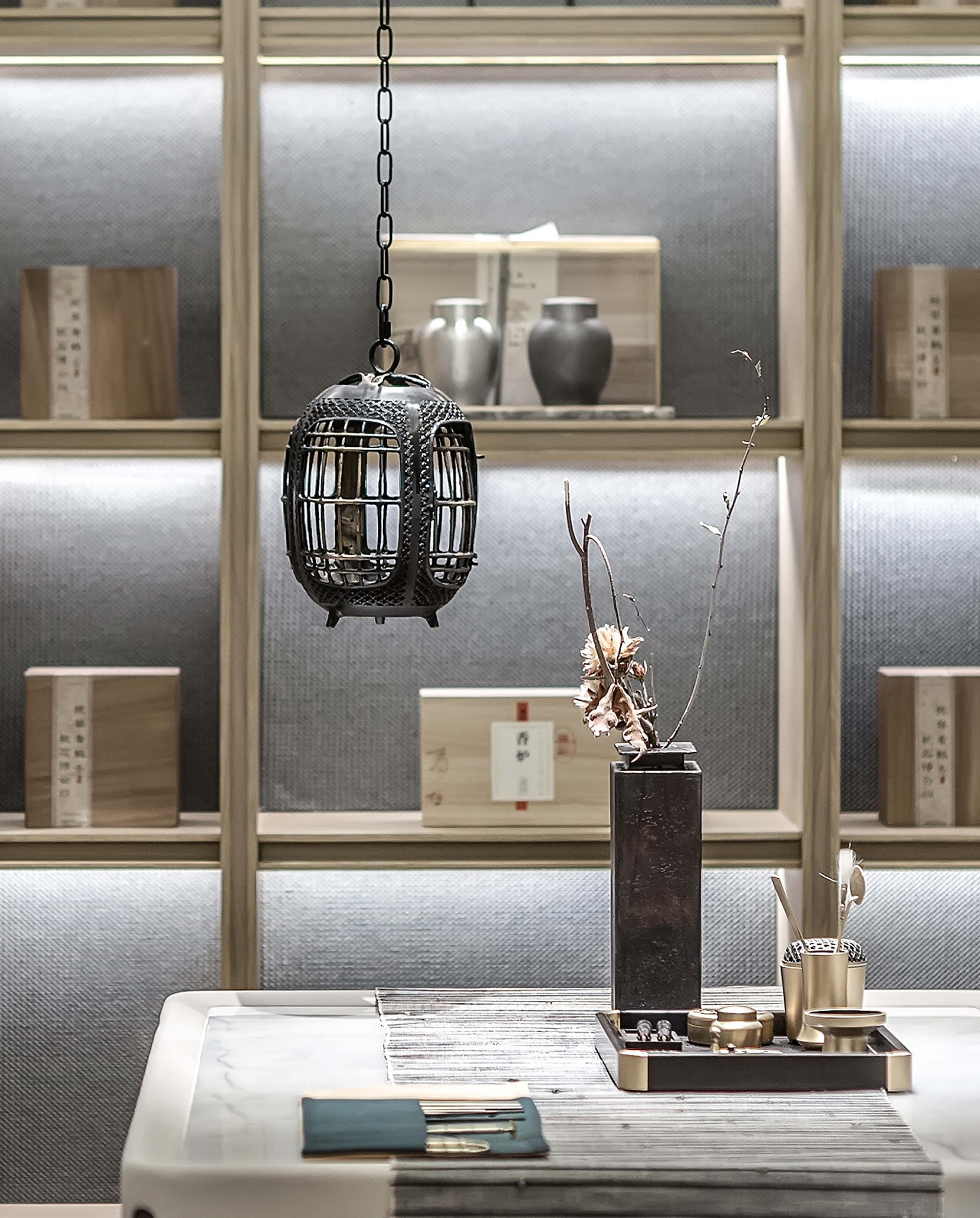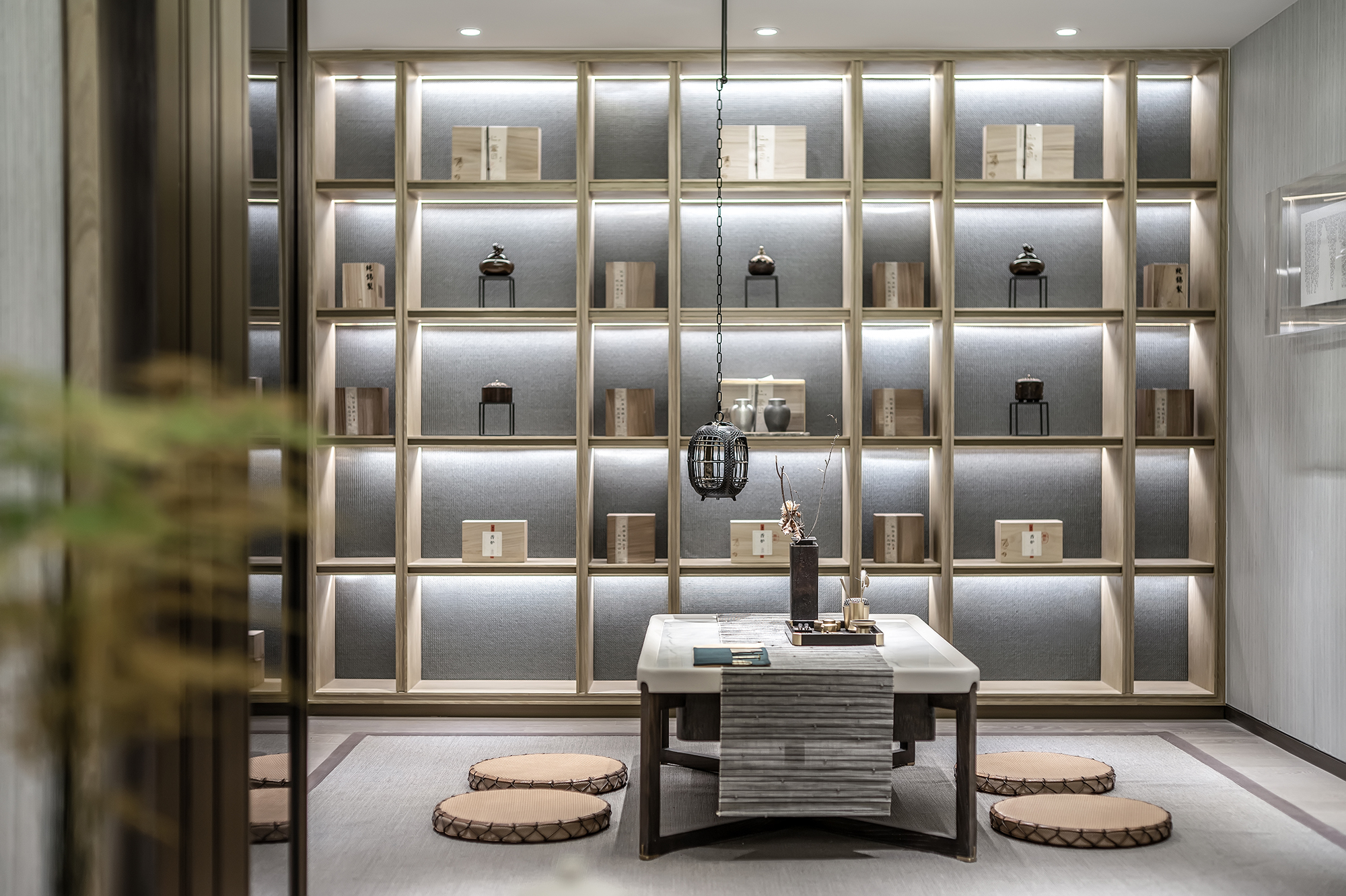 茶室設(shè)計(jì)以簡(jiǎn)淡為尚,將文仕的風(fēng)雅與現(xiàn)代生活融合,追求和體驗(yàn)人與自然契合無間的人生境界和精神狀態(tài)。一張古樸的茶桌,以實(shí)意虛,一壺清茶,靜守時(shí)光,共待流年。