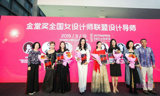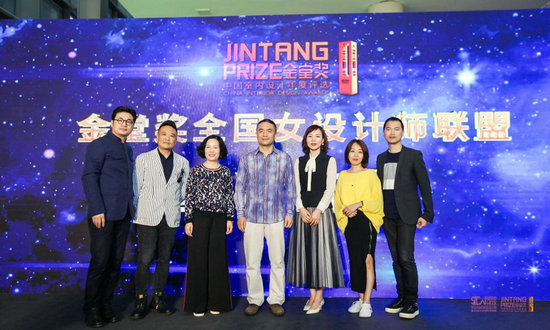 (金堂獎發(fā)起人、金堂獎全國聯(lián)盟創(chuàng)始人謝海濤、金堂獎組委會執(zhí)行秘書長黃艷紅為首批女設(shè)計(jì)師聯(lián)盟導(dǎo)師頒發(fā)證書)