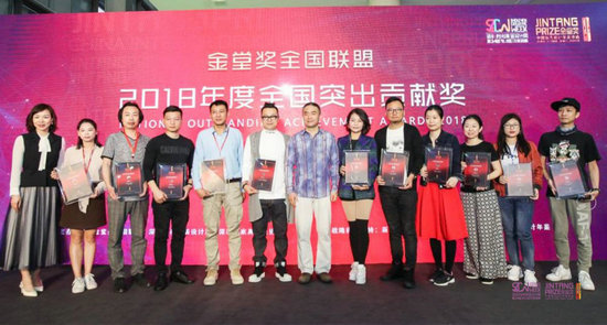 在活動現(xiàn)場,還舉辦了2018金堂獎全國聯(lián)盟“突出貢獻獎”頒獎儀式,金堂獎發(fā)起人、金堂獎全國聯(lián)盟創(chuàng)始人謝海濤代表組委會,向在2018年度工作中,在設(shè)計師服務(wù)和金堂獎組織建設(shè)中取得突出貢獻的全國機構(gòu)授予榮譽證書。