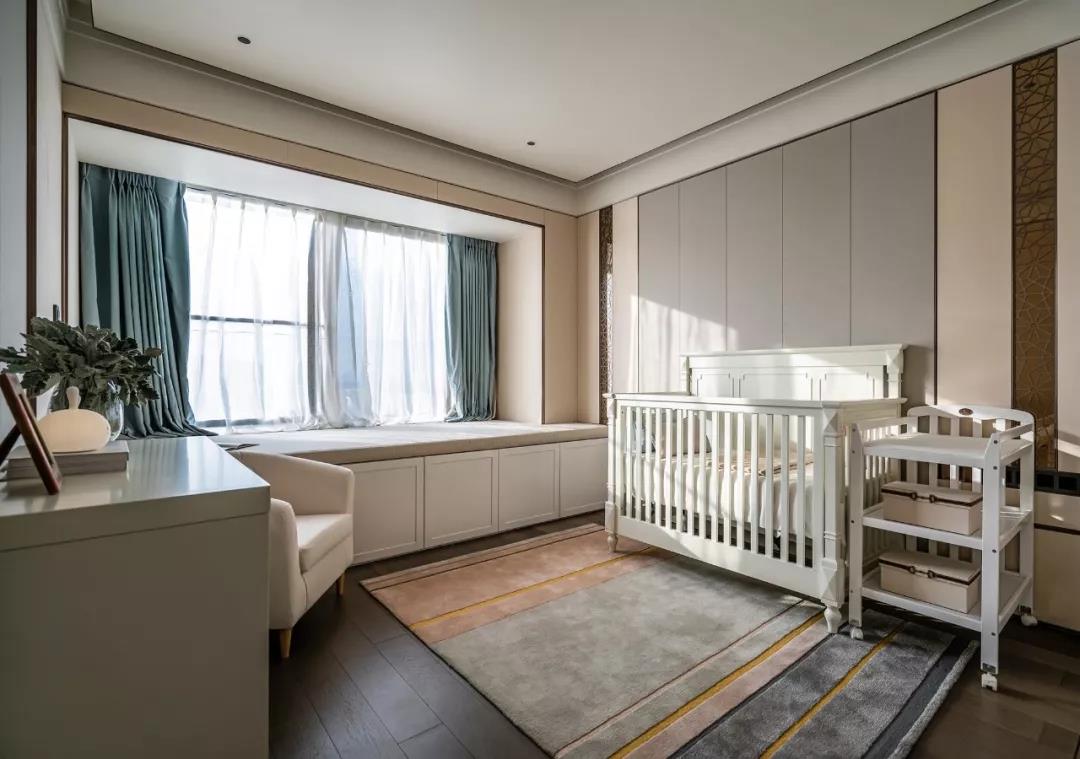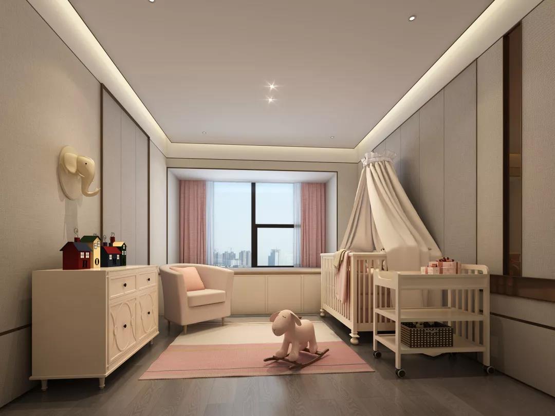 兩間嬰兒房以淡粉與水藍(lán)作為區(qū)隔,配備成對(duì)的嬰兒床、衣櫥,還有一件件童趣別致的玩具。在設(shè)計(jì)中,鴻藝源設(shè)計(jì)貫穿著對(duì)未來生活的考慮,為居住空間留有成長(zhǎng)與進(jìn)化的可能。嬰兒房及兒童娛樂室均在背景墻的設(shè)計(jì)上做了預(yù)留手法,隨著孩童的成長(zhǎng),家長(zhǎng)只需將家具進(jìn)行替換,無須進(jìn)行二次裝修。
