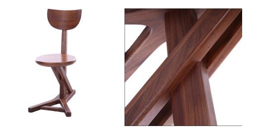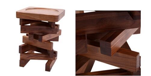 比如接下來(lái)的這款9SQ4-05型號(hào)的小凳,造型奇特,超現(xiàn)實(shí)主義的家具設(shè)計(jì)理念蘊(yùn)藏其中,底部看似隨機(jī)的14根木條形成支撐,7層堆積,7個(gè)平面的連接處都運(yùn)用了榫卯結(jié)構(gòu),形成僅有兩三結(jié)點(diǎn)相連的空間錯(cuò)亂感,完美無(wú)瑕地留存了黑胡桃木塊的結(jié)構(gòu)和表面紋理,再加上科學(xué)的受力支撐計(jì)算,一個(gè)集實(shí)用性和美觀性為一體的裝飾小凳就此誕生。擺上一盆精心侍弄的綠植或花束,擺在再不起眼的角落,也會(huì)是一道吸人眼球的亮麗風(fēng)景。