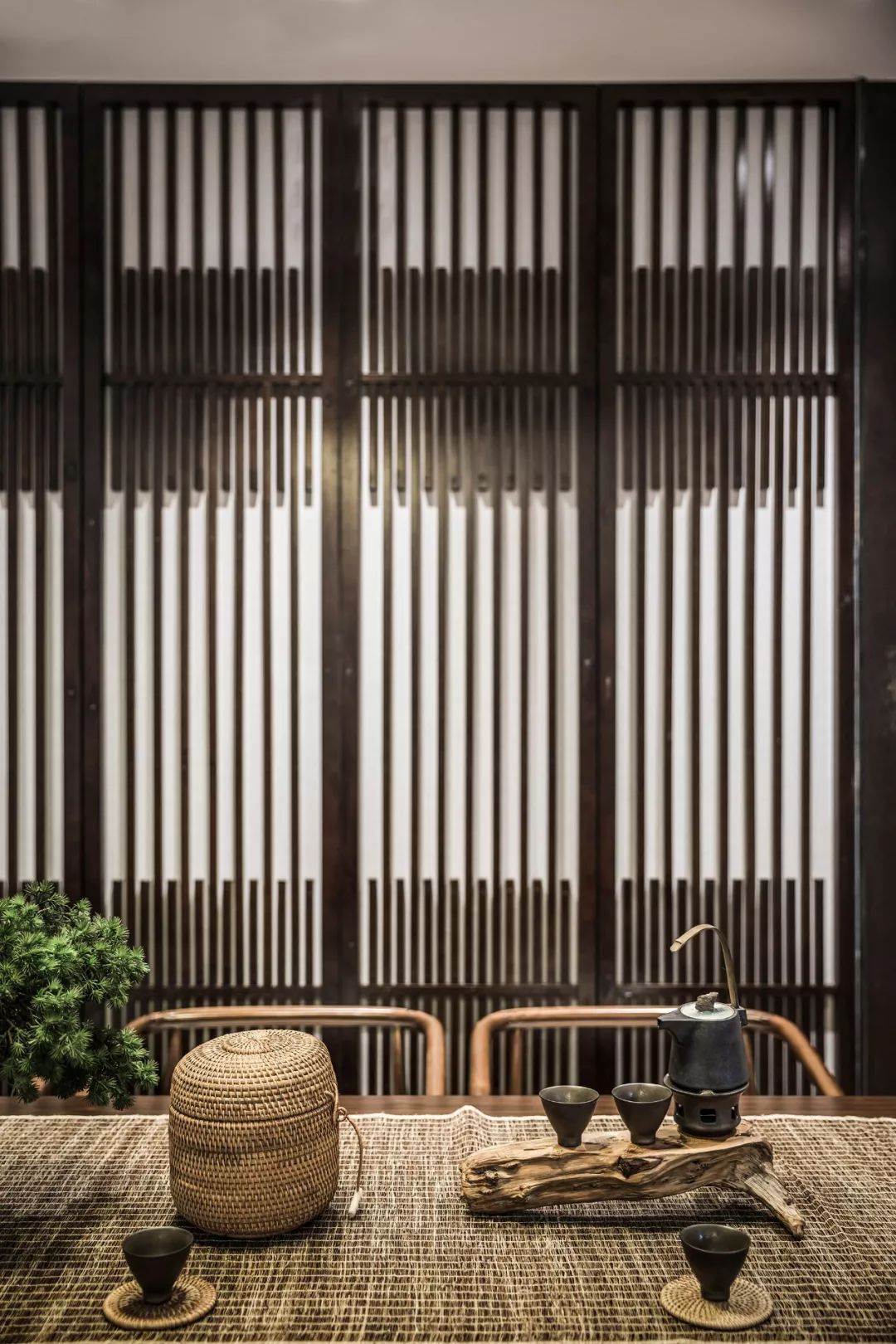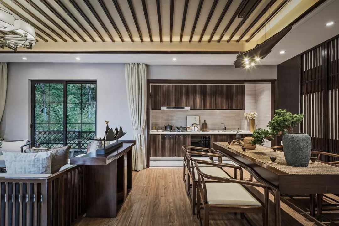 硬裝布局以“開放、包容”的生活態(tài)度為至上,不止客廳設(shè)計(jì)左右雙向門窗,開放式餐廳,也瞬間拉近了心理上的距離,傳統(tǒng)的中式餐桌椅,搭配飽含東方韻味的圓形水墨畫,以及編織感桌墊與擺件,人文墨客推杯換盞的隱居生活畫面,悠然而愜意!