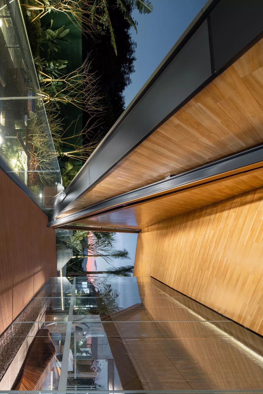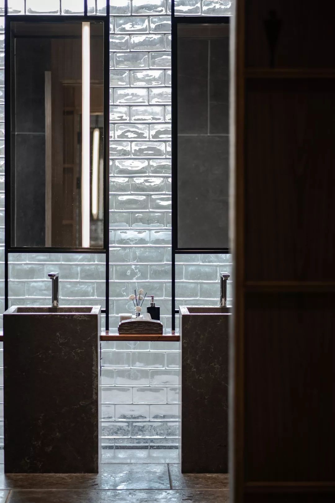 設(shè)計師將木、土、玻璃這樣的自然材質(zhì)以現(xiàn)代手法的轉(zhuǎn)化,保留最質(zhì)樸的一面。透明玻璃磚的使用,使得即便是洗手間,也有光影的舞蹈,躍動出空間的張力。