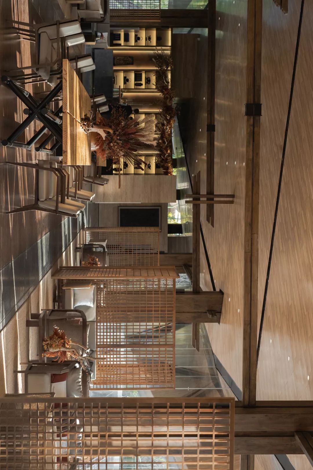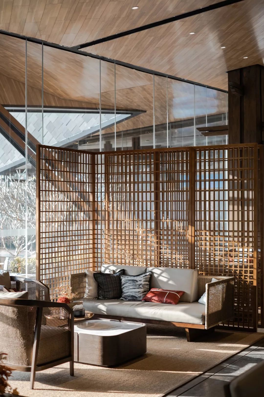 洽談區(qū)設(shè)計中,陣列式的排布,主次分明、疏落有致,實木隔柵的屏風,空間與空間間隔卻不阻隔,靈動通透,但在精神的感受上,卻又是含蓄的、靜寂的、是自我的歸處。