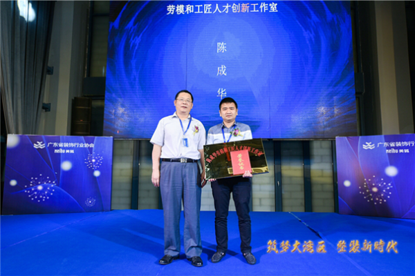 根據(jù)粵工業(yè)〔2018〕11號(hào)號(hào)“關(guān)于推薦命名2018年廣東省工業(yè)系統(tǒng)勞模和工匠人才創(chuàng)新工作室的通知”精神,廣東省工業(yè)系統(tǒng)擬推薦命名2018年勞模和工匠人才創(chuàng)新工作室20個(gè)。廣東省裝飾行業(yè)協(xié)會(huì)通過組織專家評(píng)審,報(bào)送了“陳成華創(chuàng)新工作室”參評(píng),并通過命名,省工業(yè)工會(huì)還給予啟動(dòng)資金2萬元。