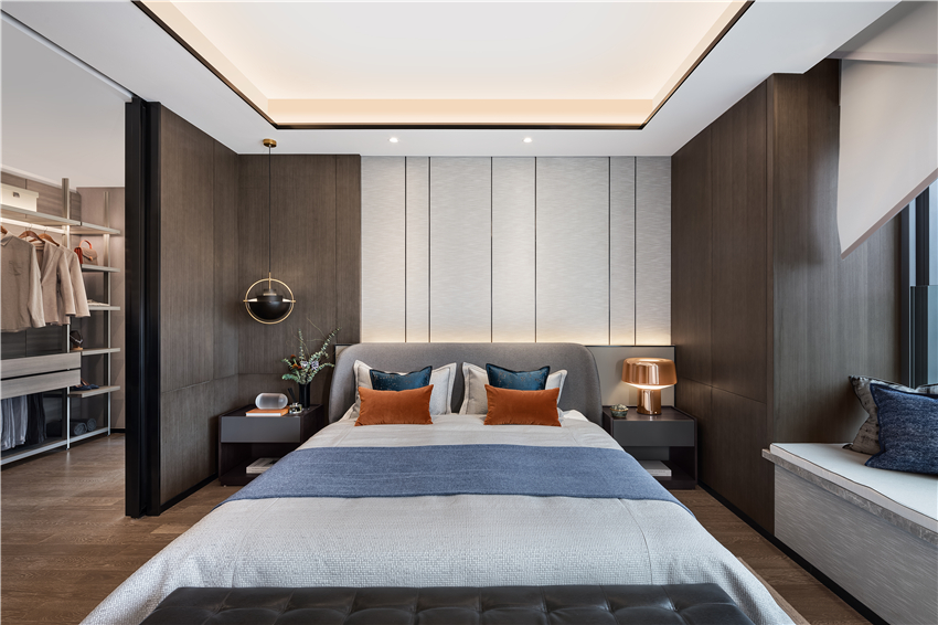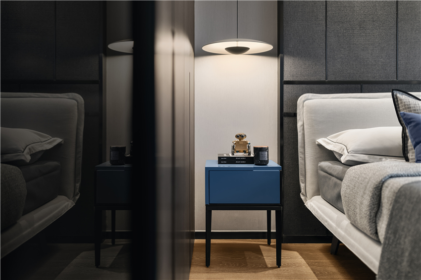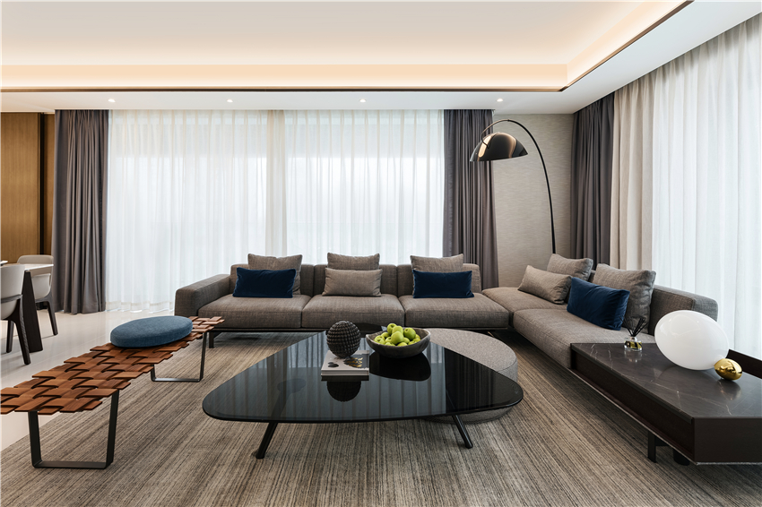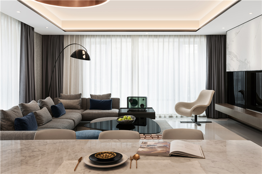 對于本次獲獎作品,薩礎(chǔ)燃在采訪中提到:“武漢萬科御璽濱江樣板間項(xiàng)目是我們做的一套全進(jìn)口項(xiàng)目,樣板間主打中高端成功男性家庭,色調(diào)多以灰色調(diào)為主,也在軟墊、抱枕等軟裝飾品上加入了一些跳色呼應(yīng),讓整個空間呈現(xiàn)出一種商務(wù)輕便、簡單舒適的居家氛圍。”而對于該項(xiàng)目的整體設(shè)計構(gòu)思,薩礎(chǔ)燃認(rèn)為樣板間設(shè)計不應(yīng)只為了展示效果而生硬設(shè)計,而應(yīng)試著去營造一種家的感覺,讓看房者、體驗(yàn)者能夠停留甚至坐下來,仔細(xì)去體味空間所營造的氛圍,觸碰家具的質(zhì)感,讓心真正的放松下來。