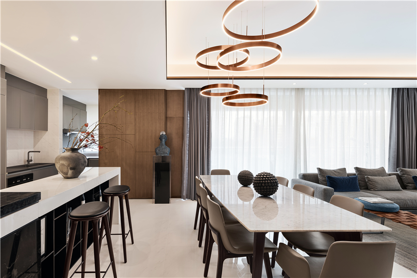 談及設(shè)計的過程,薩礎(chǔ)燃亦是感慨萬千,因?yàn)轫?xiàng)目時間緊周期短,但又不想降低項(xiàng)目品質(zhì),所以她們團(tuán)隊(duì)花了大力氣跑遍了成都、上海、香港、深圳等地意大利一線品牌家具展廳,就是為了拿到現(xiàn)貨品質(zhì)家具,以最短的時間最高的效率去呈現(xiàn)最優(yōu)質(zhì)的項(xiàng)目作品。而對于本套作品能入圍當(dāng)今中國最具影響力的建筑與室內(nèi)設(shè)計獎項(xiàng),也是中國境內(nèi)國際化程度最高的設(shè)計大獎——IDEA-TOPS艾特獎深圳賽區(qū)陳設(shè)藝術(shù)(軟裝)優(yōu)秀獎,薩礎(chǔ)燃認(rèn)為這是對她們團(tuán)隊(duì)辛苦努力最好的褒獎,以后也會更加積極努力爭取做出更好的作品,拿到更好的成績榮譽(yù)。