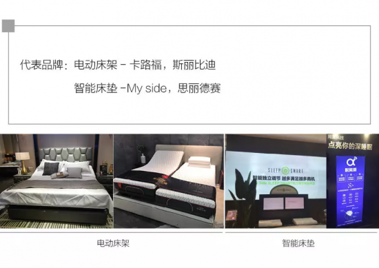 電動床是指通過機械方式對頭、腿部等部位進行升降調(diào)節(jié),以實現(xiàn)休閑、娛樂、睡眠等多種場景的臥姿切換。索菲利爾等品牌曾是這類產(chǎn)品的開創(chuàng)者,但今年展會則幾乎所有的床墊品牌都擁有了幾款電動床產(chǎn)品,說明這一細分市場正逐步走向成熟。
