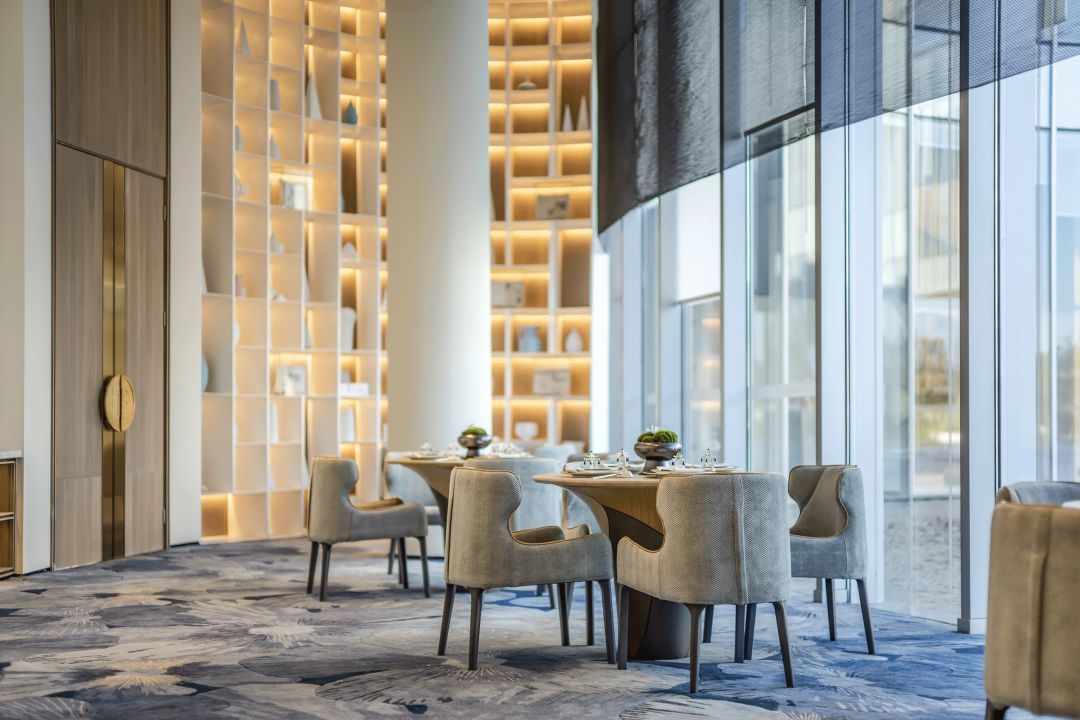 所以軟裝設(shè)計(jì)團(tuán)隊(duì)元禾大千通過抽象表現(xiàn)“云”和“水”這兩個(gè)元素,將龍里的過去與未來進(jìn)行聯(lián)系。同時(shí)設(shè)計(jì)中大量考慮了抽象的風(fēng)動(dòng)藝術(shù)裝置,恰似來自未來的信息。云、水、風(fēng),無論多么抽象的表達(dá),包裹的都是東方的內(nèi)核:龍之故里,風(fēng)生水起。