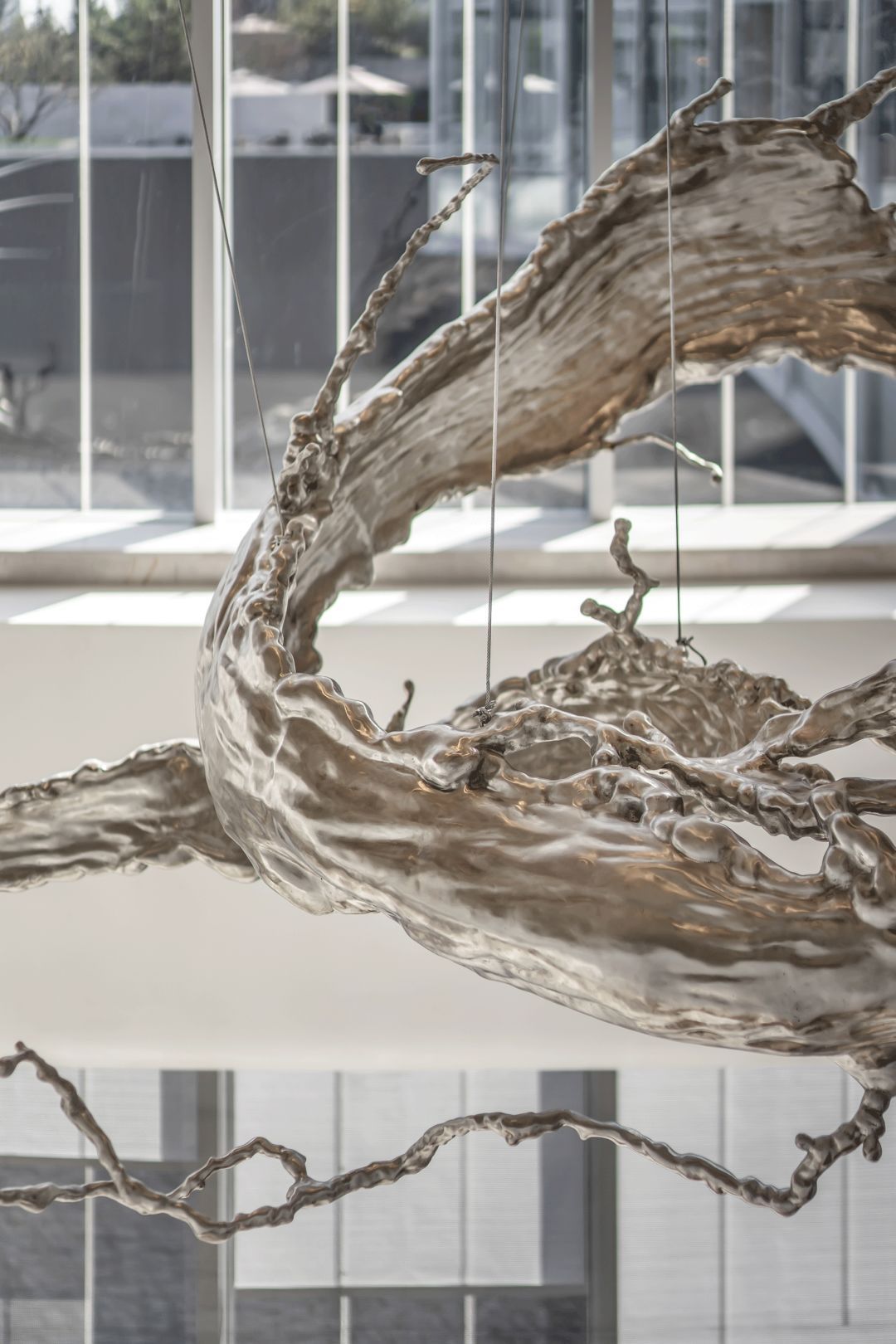 “云和水都是極為飄渺靈動(dòng)的無形之態(tài),如何凝固和捕捉這種虛幻,是此次設(shè)計(jì)最大的難題,設(shè)計(jì)和生產(chǎn)都極為考驗(yàn)。”設(shè)計(jì)師說:“輕盈的動(dòng)態(tài)感非常難以呈現(xiàn)。為此我們做了無數(shù)次的實(shí)驗(yàn),捕捉水流而下的各種狀態(tài),根據(jù)不同的形態(tài)和空間的尺度,最后在成百張形態(tài)的手稿中選擇了一個(gè)最曼妙也最契合空間的。”