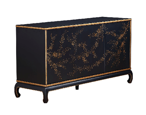 若蘭邊柜承襲蘭花的君子之風(fēng),黑漆為底,古樸幽雅;柜身彩繪描畫(huà),詩(shī)意洇染,蘊(yùn)含著一份宜古宜今之美。