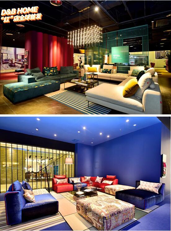 帝標D&B HOME “紅”店位于成都富森美“拎包入住”館的二樓,1400平方米的超大店面、時尚現(xiàn)代的設(shè)計、跳躍流動的絢麗色彩,讓這個定位于“網(wǎng)紅”的店在一眾大店中格外搶眼。