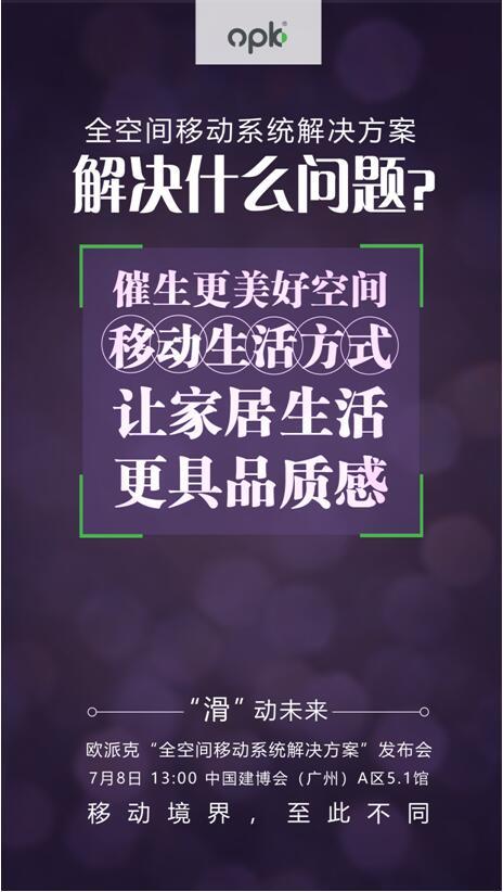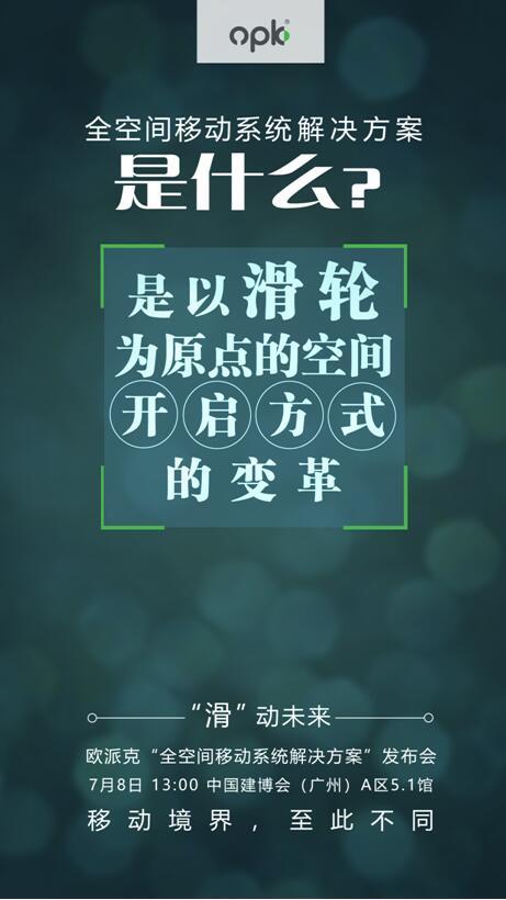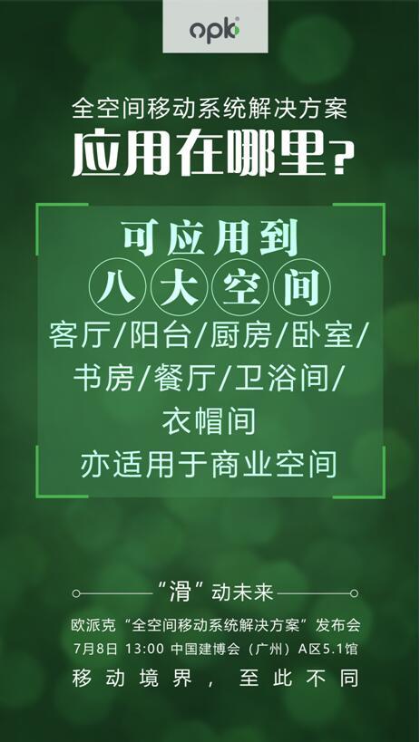 想見證歐派克如何用滑輪改變定制未來?想與歐派克一起抓住定制轉(zhuǎn)型新機遇?2019年7月8日下午13點30分,“滑”動未來——歐派克“全空間移動系統(tǒng)解決方案”發(fā)布會,將在A區(qū)5.1館31號&53號正式啟幕,等你相約,一起開啟定制”滑“時代!