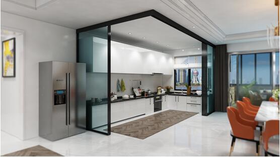磁懸浮窄邊框隔斷門(mén)在廚房空間的應(yīng)用受到了眾多參展者的青睞,廚房空間的開(kāi)放與封閉,可實(shí)現(xiàn)自如變換,家居設(shè)計(jì)的美感也很強(qiáng)烈,讓做飯之地變得從容自在。