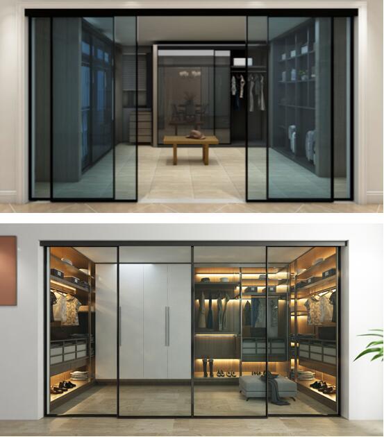 磁懸浮軌道和窄邊框玻璃門(mén)是衣帽間空間的點(diǎn)睛之筆,使用磁懸浮軌道安裝的玻璃移門(mén)無(wú)需碰觸,便可自動(dòng)開(kāi)啟;玻璃材質(zhì)讓衣帽間內(nèi)的物品美陳一目了然;邊框?qū)挾茸钚】蛇_(dá)750mm,順應(yīng)極簡(jiǎn)主義風(fēng)格的同時(shí),擴(kuò)大產(chǎn)品使用范圍。衣帽間內(nèi)部應(yīng)用了小面積的玻璃移門(mén),提升衣帽間的品味感,順暢、靜音的滑動(dòng)效果,讓推拉也成為一種享受。應(yīng)用神舟11號(hào)移門(mén)衣柜更顯質(zhì)感效果,神舟11號(hào)具有對(duì)向緩沖功能,滑動(dòng)時(shí)不會(huì)產(chǎn)生任何摩擦,高度簡(jiǎn)易可調(diào),安裝拆卸便捷,脫鉤自動(dòng)復(fù)位。