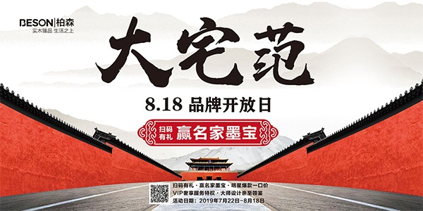 從心出發(fā),筑建大宅范。 7.22-8.18柏森家具全國大型促銷活動震撼開場,推出多項大宅鉅惠:掃碼有禮,贏名家墨寶,3000元/5000元大額抵金券無限量,瘋狂送;明星爆款一口價,主打客廳,餐廳等熱銷產(chǎn)品一口價,罕見優(yōu)惠;特別巨獻VIP奢享服務;8月18日當天,全國柏森門店統(tǒng)一進行大師設(shè)計案例品鑒會,與您一起鑒賞潮流新設(shè)計,踐行大宅范。