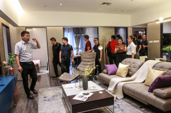 在參觀完亞度家居后,深圳家具行業(yè)協(xié)會游學團來到富森美拎包入住生活館。