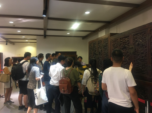 第四站:參觀龍順成明清古典家具博物館,龍順成銷售部經(jīng)理馬鐵松帶領(lǐng)大家在這里參觀了50余件珍貴的硬木家具藏品,展出的藏品歷史悠久、種類豐富,制作年代最早可追溯到明清時期,近距離的感受了硬木家具圓潤柔和及精細生動的雕工。