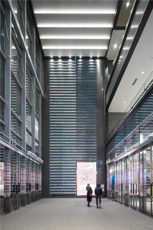 茂林修竹,灰白砂礫,在陽(yáng)光傾瀉而下,清雅閑澹;經(jīng)夜幕星光籠罩,靜謐俊逸。空間的燈光設(shè)計(jì)隱藏于,竹木格柵圍合出的不同空間,層次感與秩序感因燈光的巧妙布局而得以凸顯,柔和的光影描摹、疊合出新型城市地標(biāo)的多維度縮影。中庭連廊天花上有序排列的球狀燈飾,猶如一顆顆晶瑩剔透的珍珠鑲嵌其中,在光影視像的明暗更迭下,自審美格調(diào)延展開(kāi)來(lái),一個(gè)充滿活力的城市中心印象躍然眼前。