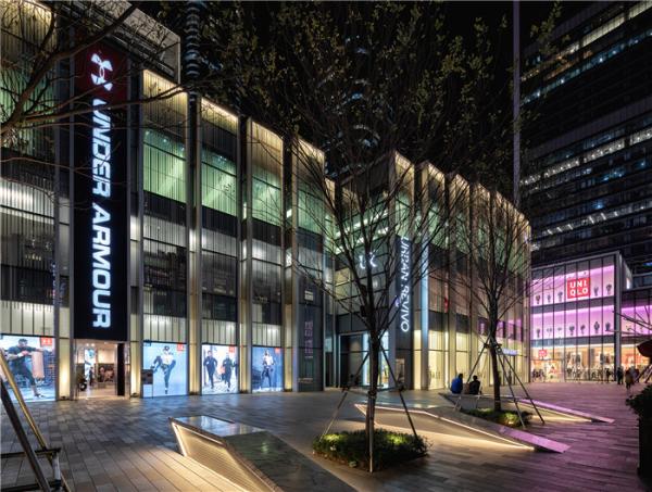 商業(yè)綜合體串聯(lián)起一個(gè)人日常生活的休閑序列,其建筑外觀、室內(nèi)燈光的設(shè)計(jì)排布,扮演著城市夜景觀中閃亮的角色——輪廓映像與體量效果的展示,點(diǎn)亮一座座城市的夜間天際線,劃下生活其中的人們與這些城市之間光學(xué)視覺(jué)聯(lián)結(jié)下所潛藏著的情感錨點(diǎn),錨定都市美好生活的休閑鏡面,溫暖而別具質(zhì)感。