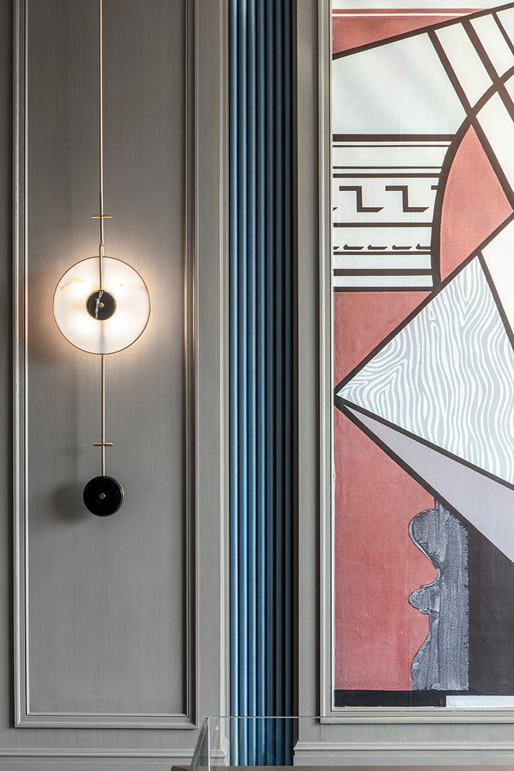 設(shè)計(jì)以糅合、疊加、重構(gòu)的方式,詮釋古典哲思、波普趣味、現(xiàn)代簡美相融的藝術(shù)靈魂,將Art Deco的豐富與多元演繹得恰到好處。古典形制的運(yùn)用,帶來了空間自建筑外立面由外及內(nèi)的優(yōu)雅風(fēng)韻,在派尚設(shè)計(jì)的藝術(shù)手筆下,鋪敘出一個(gè)售樓空間豐盈而立體的美學(xué)視像。
