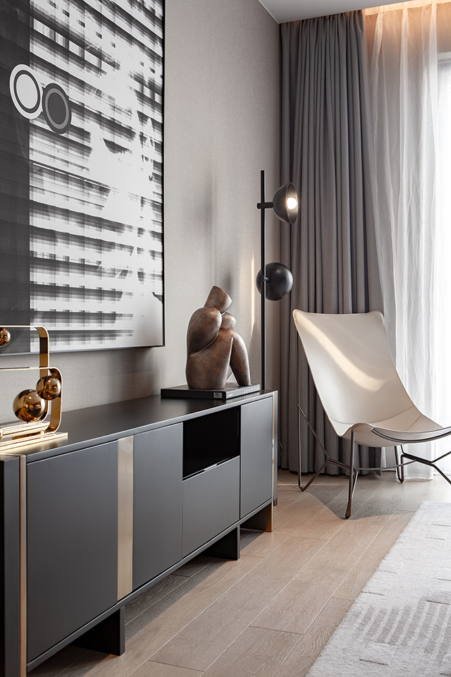 “太過繁復(fù)艷麗的裝飾設(shè)計,會使觀者在空間中迷失審美藝術(shù)與想象。”建筑設(shè)計師的專業(yè)出身,令周靜在空間營造中保持著簡明的理性,堅持以當(dāng)代簡練的設(shè)計筆觸與不凡的藝術(shù)想象勾勒出空間的生活美學(xué)質(zhì)地。