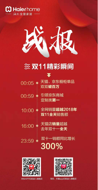 2019雙11落下帷幕,海爾全屋家居交出驚艷成績單:線上收獲爆發(fā)式增長,雙11全天銷額同比增長300%!
