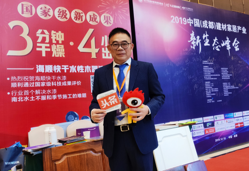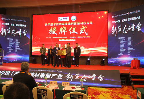 12月10日,2019中國(成都)建材家居產(chǎn)業(yè)新生態(tài)峰會,廣東海順新材料科技有限公司(以下簡稱“海順科技”)快干型水性木器漆涂料體系科技成果授牌儀式隆重舉行。中國高科技產(chǎn)業(yè)化研究會、中國建筑材料流通協(xié)會、全國工商聯(lián)家具裝飾業(yè)商會、四川省建材家具裝飾商會、廣東省門業(yè)協(xié)會、廣州市定制家居行業(yè)協(xié)會、九正科技集團(tuán)、九正建材網(wǎng)、掌上明珠家居、尚品宅配、千川木門、海爾家居、皇朝家私、龍馬木業(yè)等多家行業(yè)協(xié)會以及多家行業(yè)媒體共同見證了這一難忘的時刻。